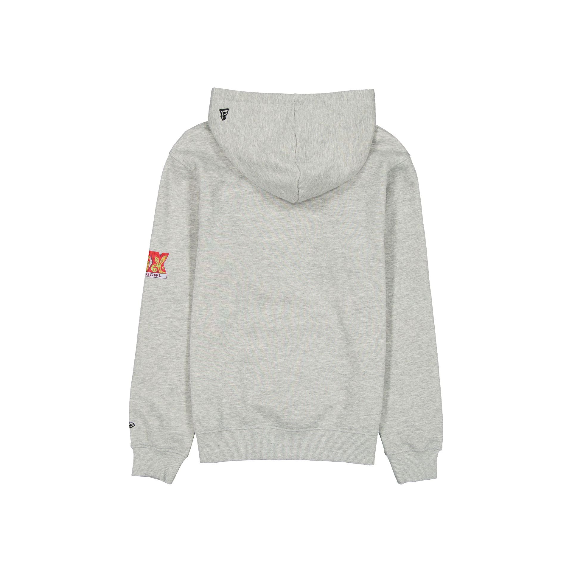 The Super Bowl LIX Gray Hoodie features a screen-printed Super Bowl LIX graphic at the front with a matching logo at the left sleeve. a kangaroo pocket. and adjustable drawstrings at the hood.