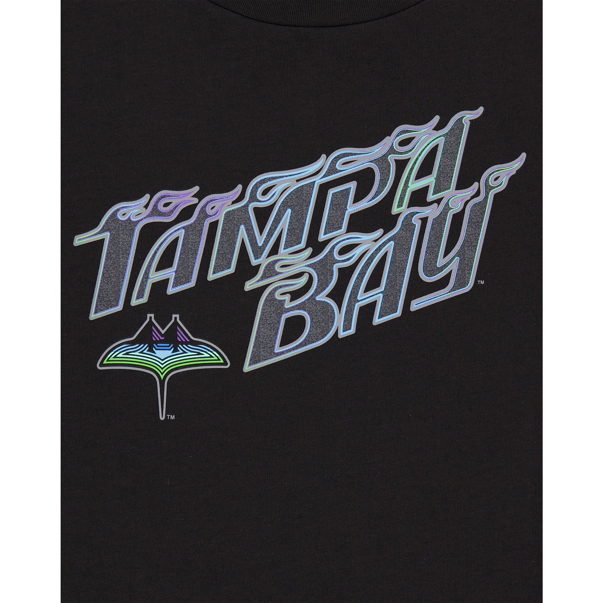 The Tampa Bay Rays City Connect Women’s T-Shirt features a screen-printed Rays wordmark at the front with a team logo at the left sleeve.