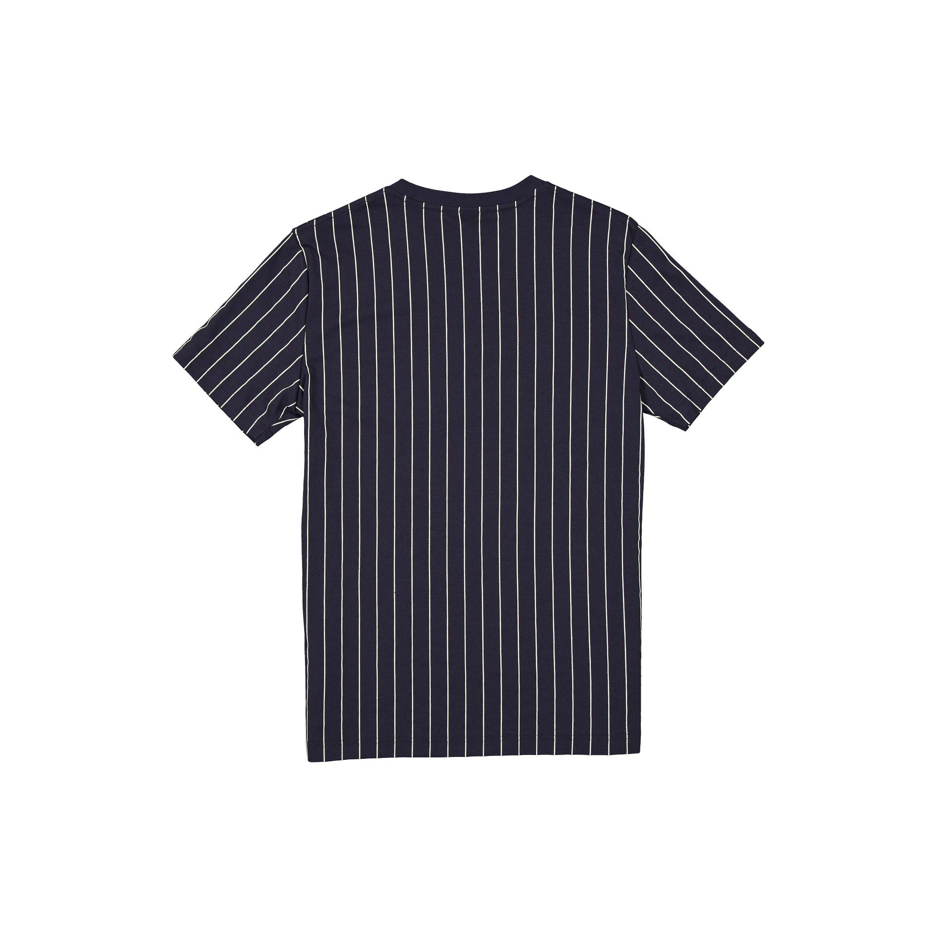 The Tampa Bay Rays Throwback Pinstripe Wordmark T-Shirt features a twill applique Rays wordmark and logo at the front with a New Era jock tag at the left hip.