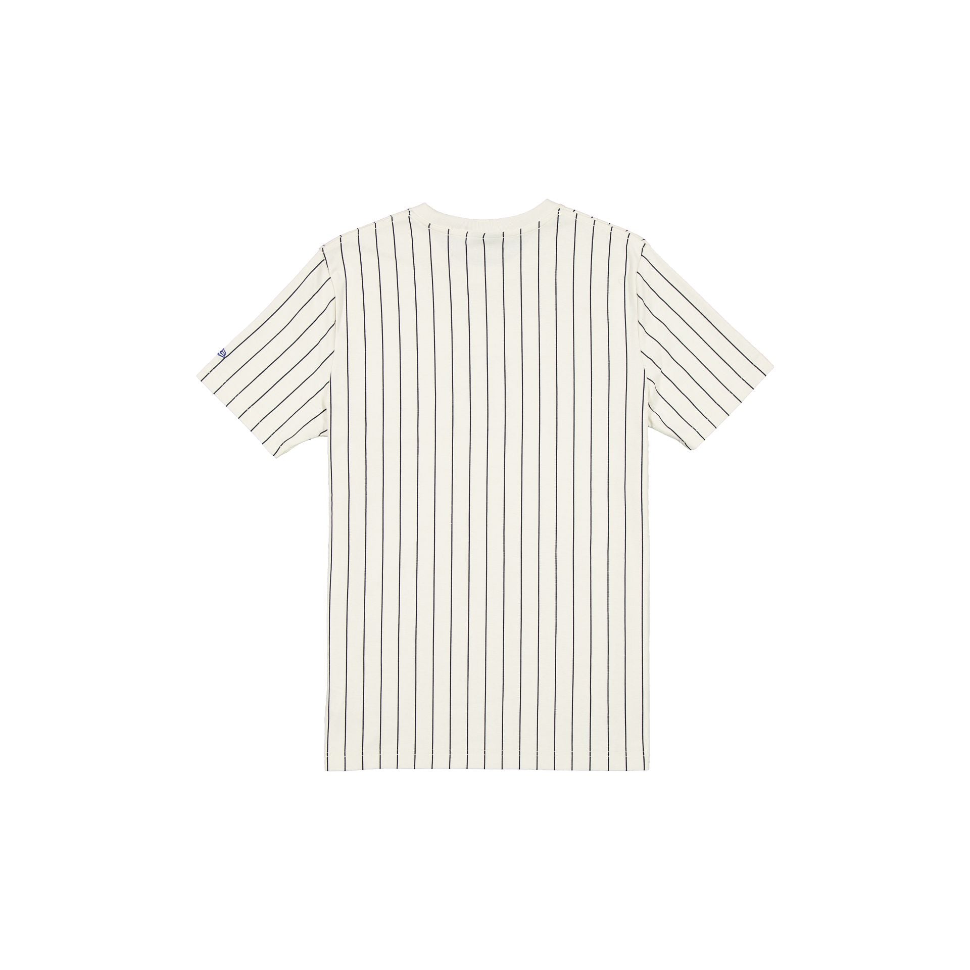 The Texas Rangers Cooperstown Throwback Pinstripe T-Shirt features an embroidered Rangers Cooperstown logo and wordmark at the front with a New Era jock tag at the left hip.