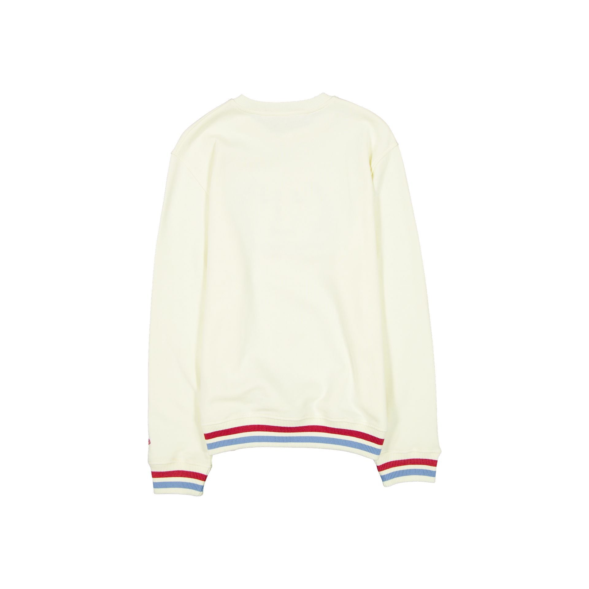 The Texas Rangers Throwback Chrome White Crewneck features a twill applique Rangers logo and an embroidered wordmark at the front with a New Era jock tag at the left hip.
